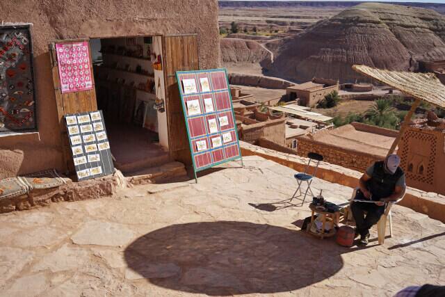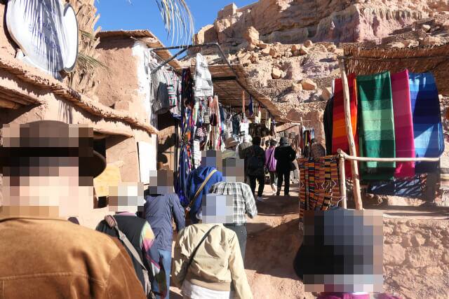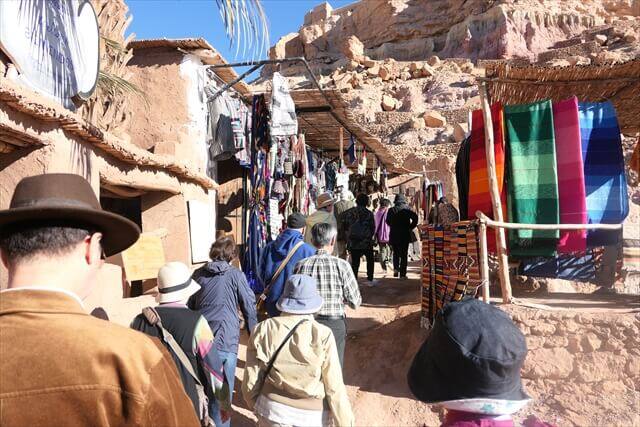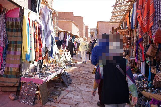 アイトベンハッツドウーの街並みに入ってからも町の下の方には土産店が並んでいます。