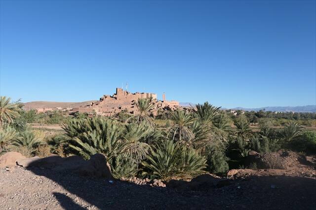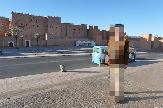 ワルザザートで宿泊したホテルを出発したバスは、まずはカスバ(城壁に囲まれた居住地区や要塞化された集落)の全景を見ることができる場所の前で停車して写真タイムです。