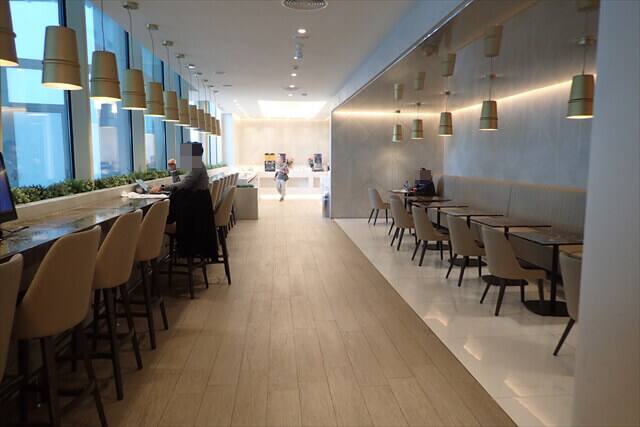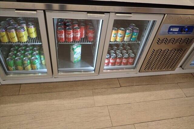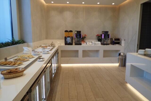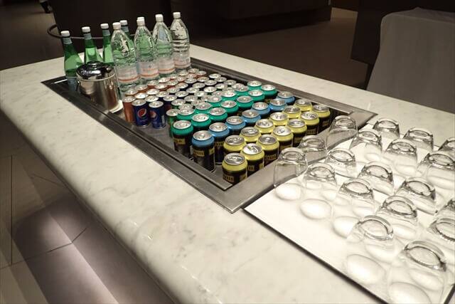 とても広いラウンジなのですが、飲み物だけはセルフで頂けるコーナーが何か所も設置されていましたのでそれはとても便利でした。