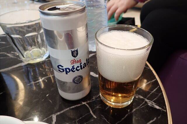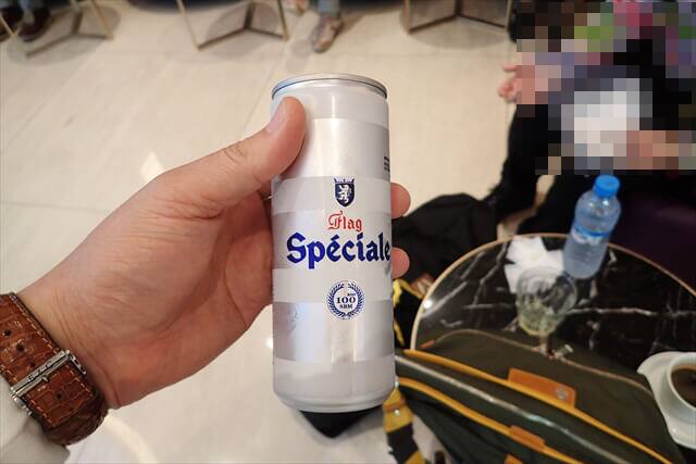バーコーナーにはつまみなどはいっさい無く、スタッフにビールを頼みますと缶ビールを渡されました。