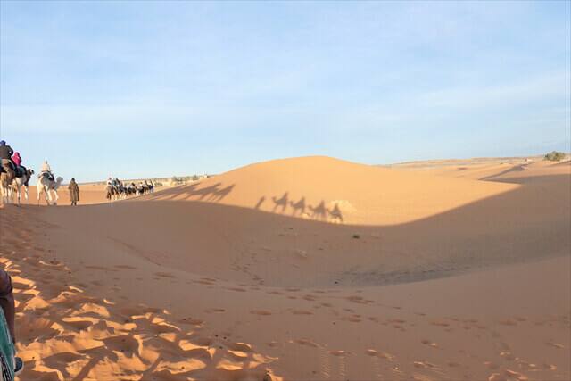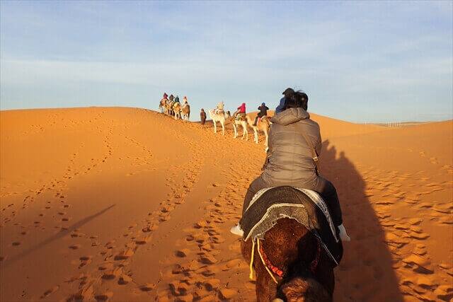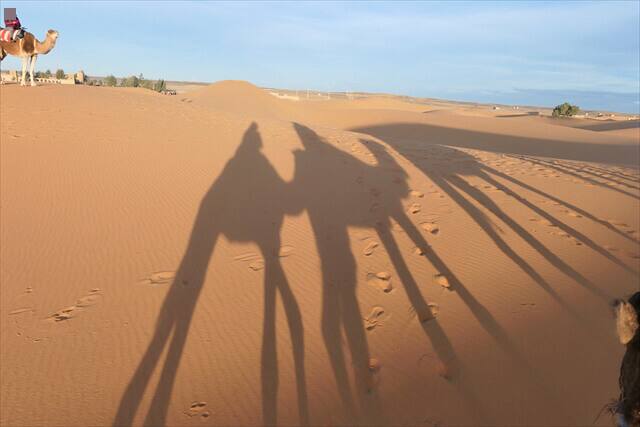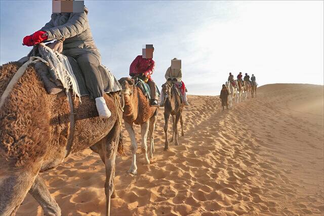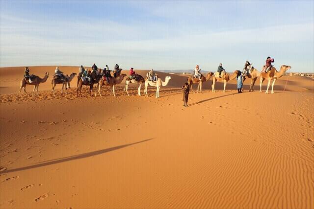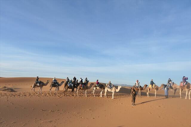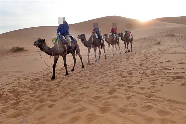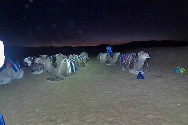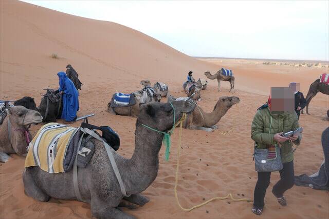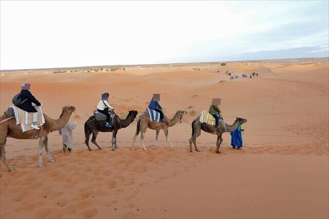 ツアーの旅行案内書には「メルズーカ砂丘でサハラ砂漠の幻想的な夜明けをお楽しみ下さい」とのみ書かれていましたが、ラクダに乗るのは別料金が必要でした。