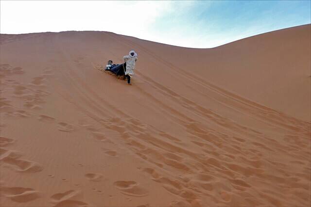 最後に砂丘からラクダのいるところまで降ろしてくれるベルベル人のスペシャルサービスの様子もわかります。