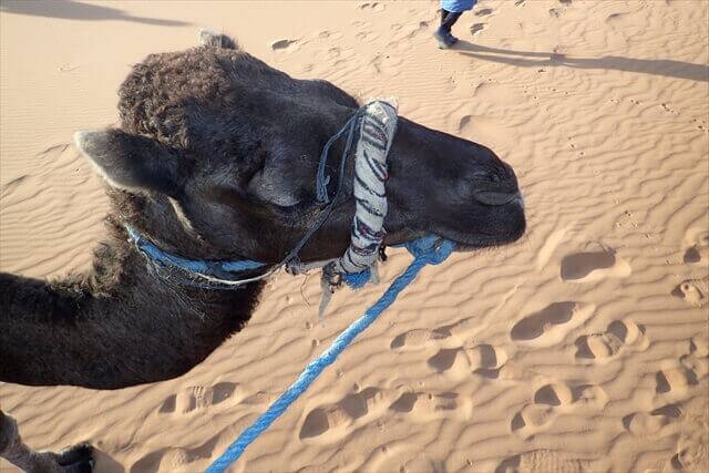 ラクダに乗る時にはベルベル人がラクダの体を低くなる様にしてくれますので、背中をまたげば容易に乗ることができました。