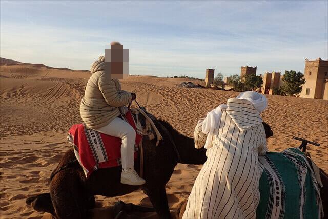 ホテルに戻る時にはラクダを引っ張てくれているベルベル人がラクダに乗っている姿をカメラで撮影してくれます。