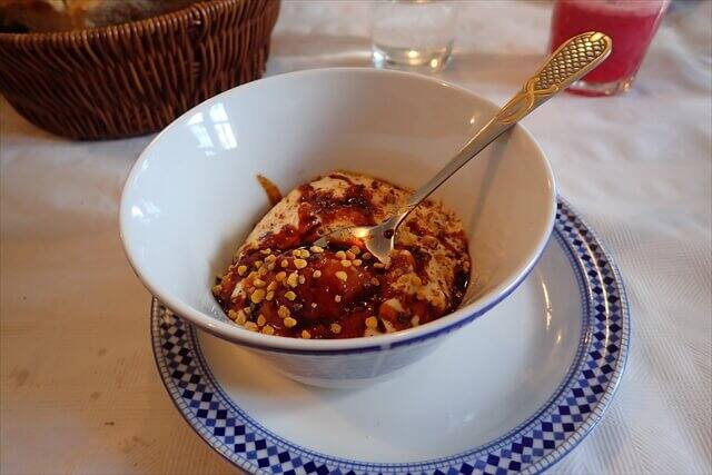 デザートはイナゴマメのはちみつ入りヨーグルトです。
