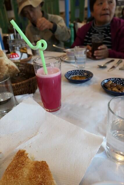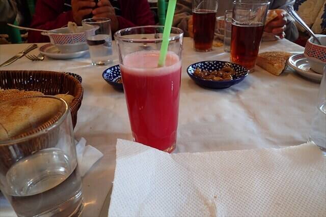 こちらのレストランには残念ながらアルコール飲料がありませんでしたので30ディルハムのザクロジュースを頂きました。