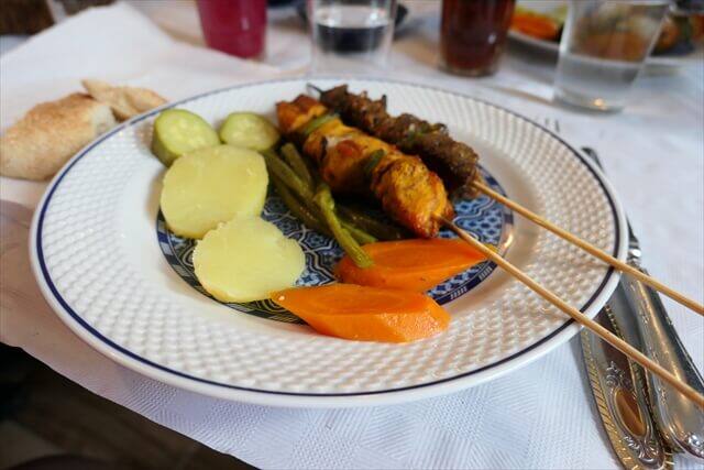 メインメニューはチキンと牛の炭焼のケバブ料理でした。