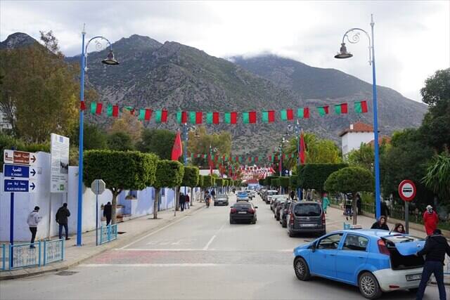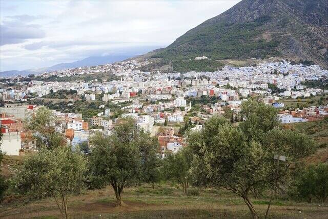 バスに乗車しますとシャウエン街はすぐで、途中でシャウエンの街を一望できる場所でバスは一旦停車して写真を撮らせてくれました。