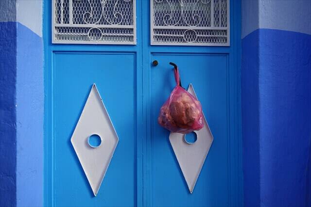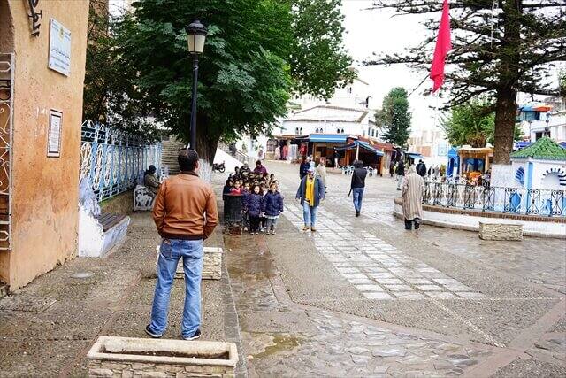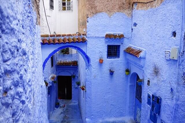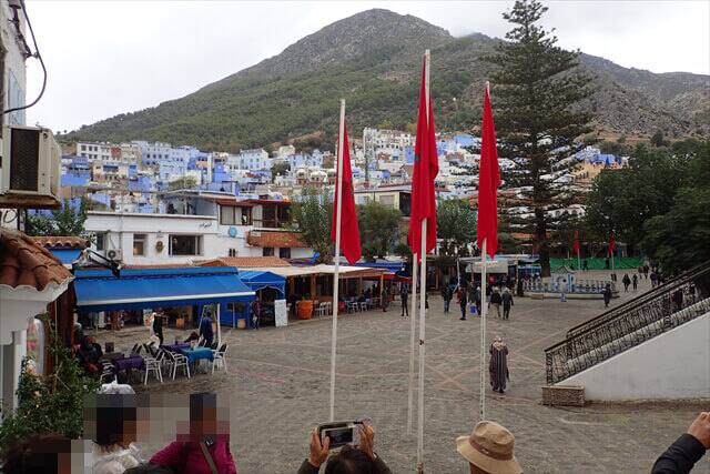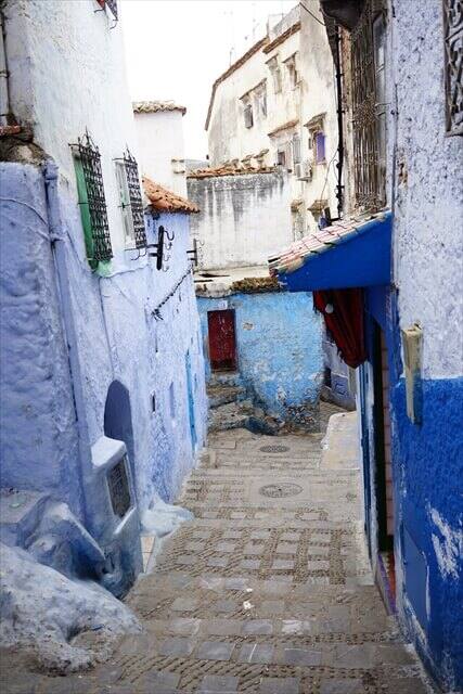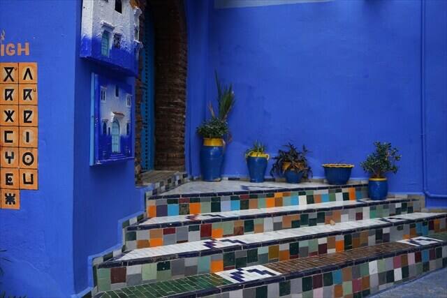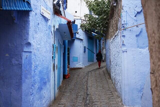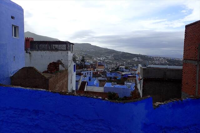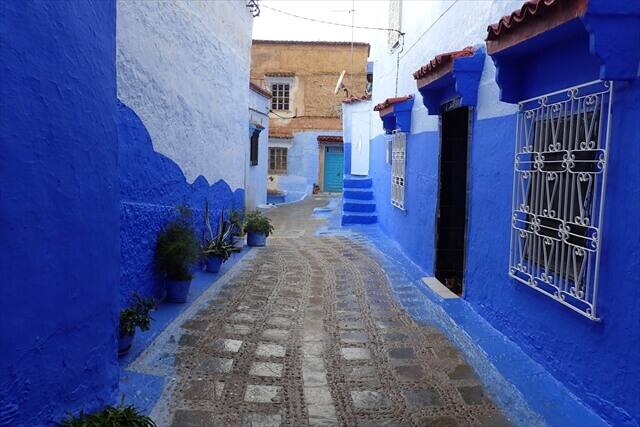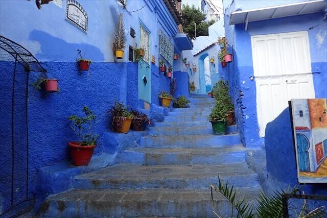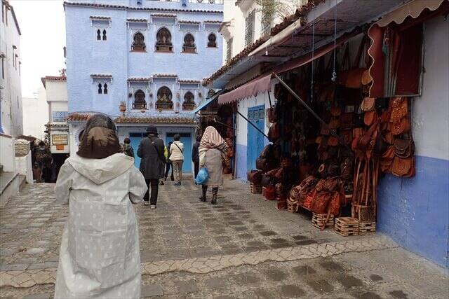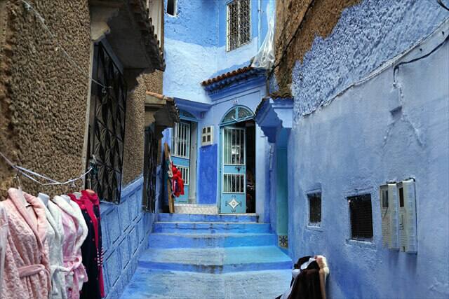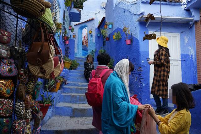 シャウエン観光の時の服装は青いバックに映える服の色で観光することをお勧めします。