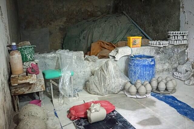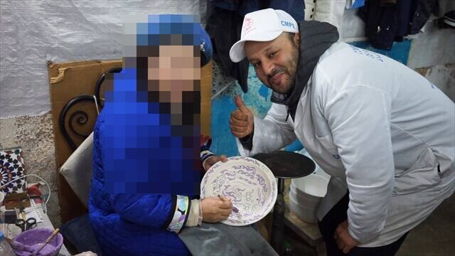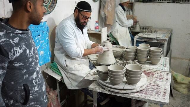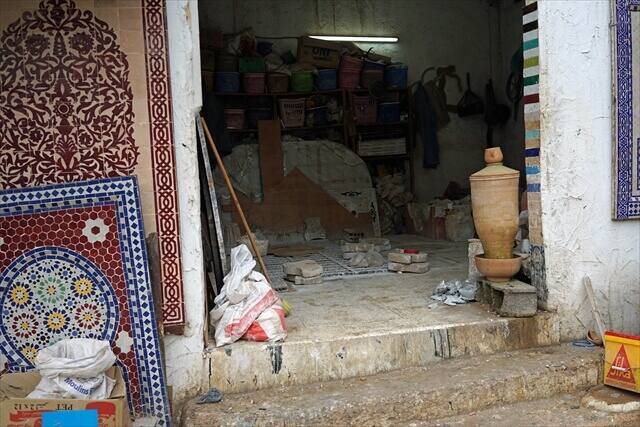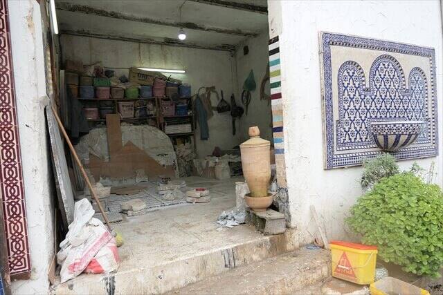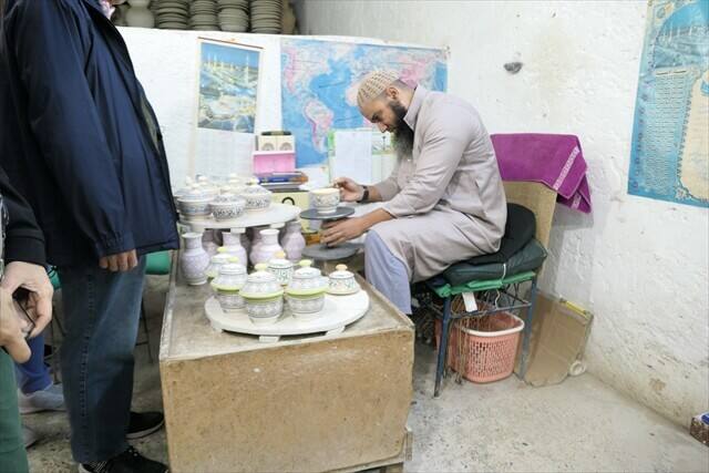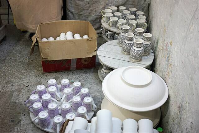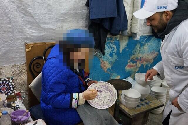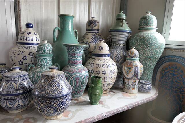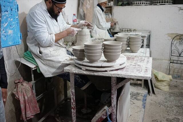 まずはフェズブルーが有名な陶器を、轆轤(ろくろ)を使って作っていく工程と絵付けの工程の見学です。