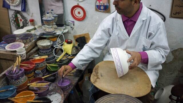 ここで連れ合いが陶器の模様に色付けをしろとスタッフに言われて記念に撮影をさせてもらったのですが、しっかりチップを要求されて20ディルハムかかりました。