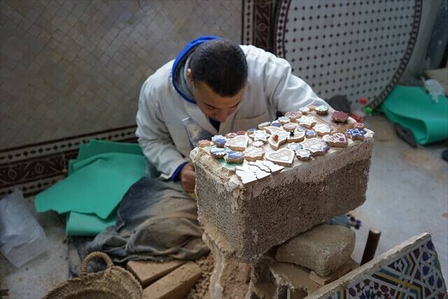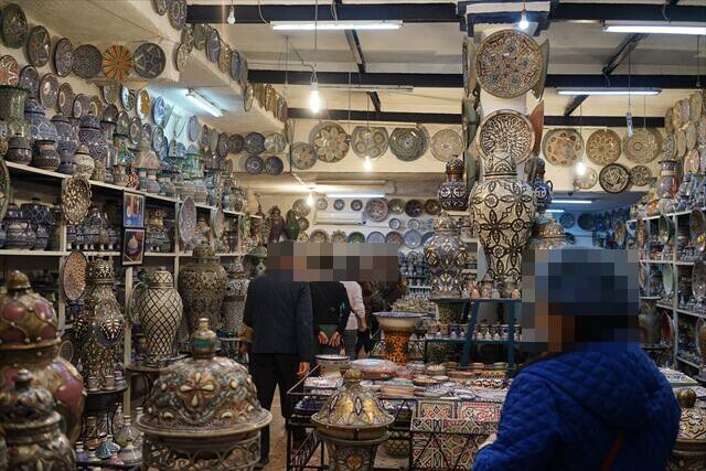 展望台観光後にバスはfez moroccan pottery &zellige tilesというフェズ焼きとモザイクタイルの工房に行きました。