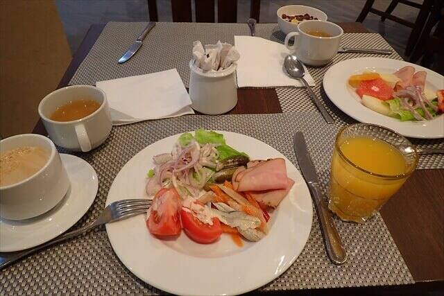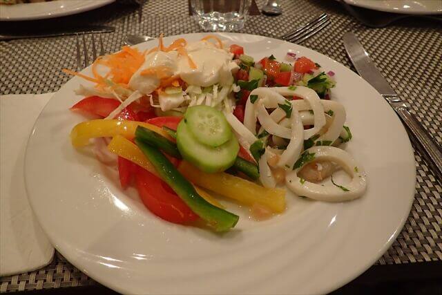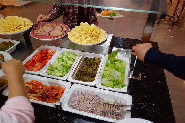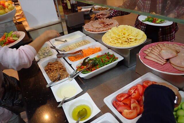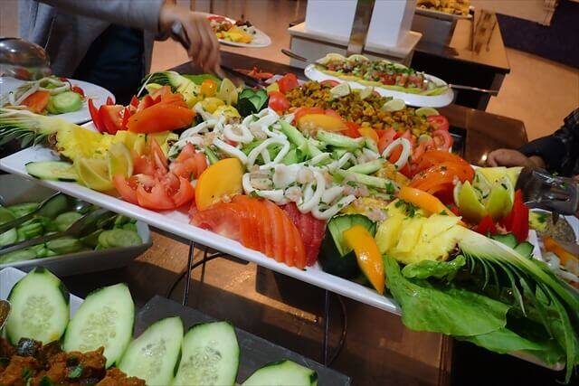 フルーツの種類は多かったのですが、サラダの野菜の種類は少ない方だと感じました。