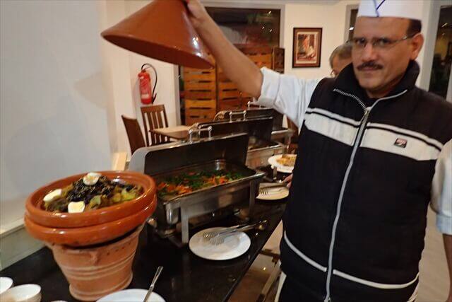 タジン料理はどうだとばかりにスタッフが器をオープンしてくれました。