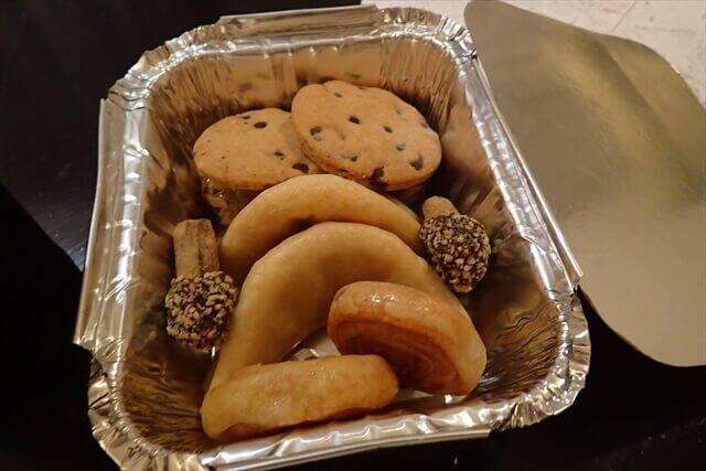 そうしましたらレストランで作ったクッキーも持って行ってくれと言われ、部屋までアルミの容器に入れて持って来てくれました。