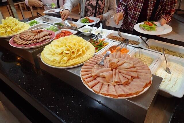 1泊目の夕食はホテル内レストランでビュッフェ料理となっていました。
