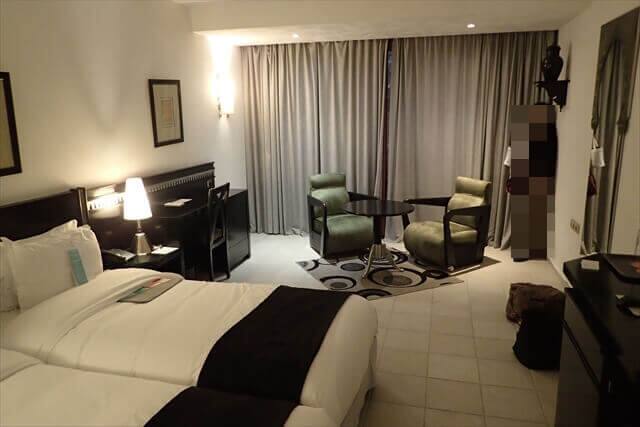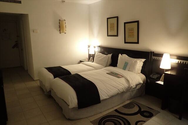 1泊朝食付きで1室の宿泊代金が1,121ディルハムですから日本円で44,500円ほどの部屋です。
