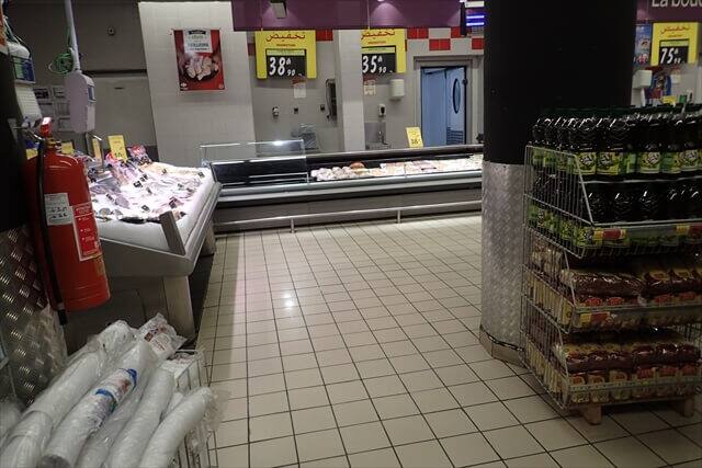入ってから通路を進み1本目の交差する通路を左に曲がりそのまま通路を進みますと一番奥にカルフールの入り口があります。