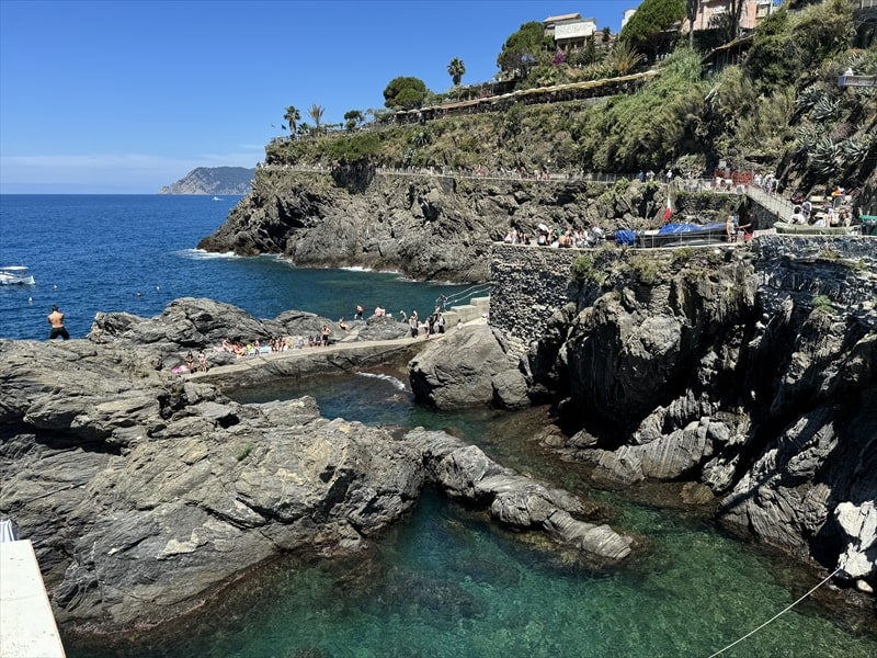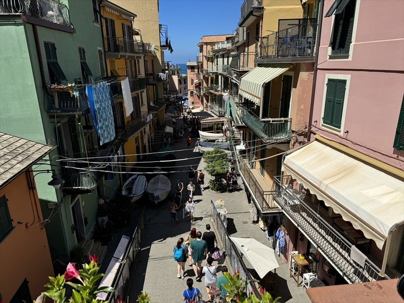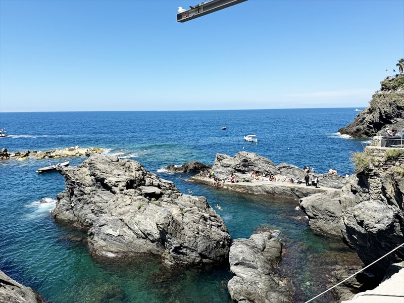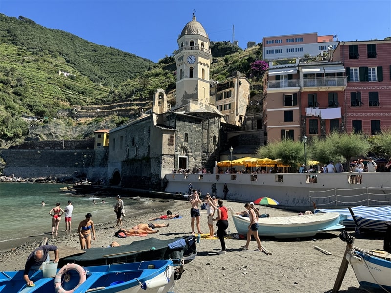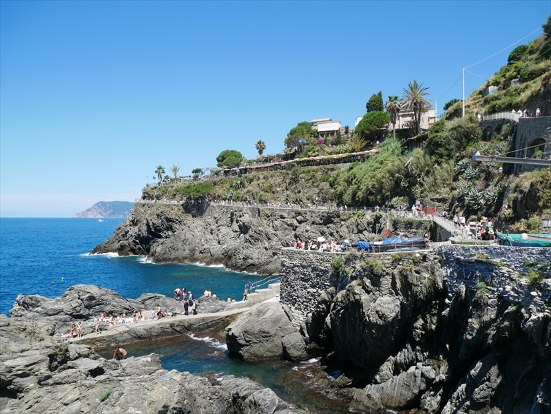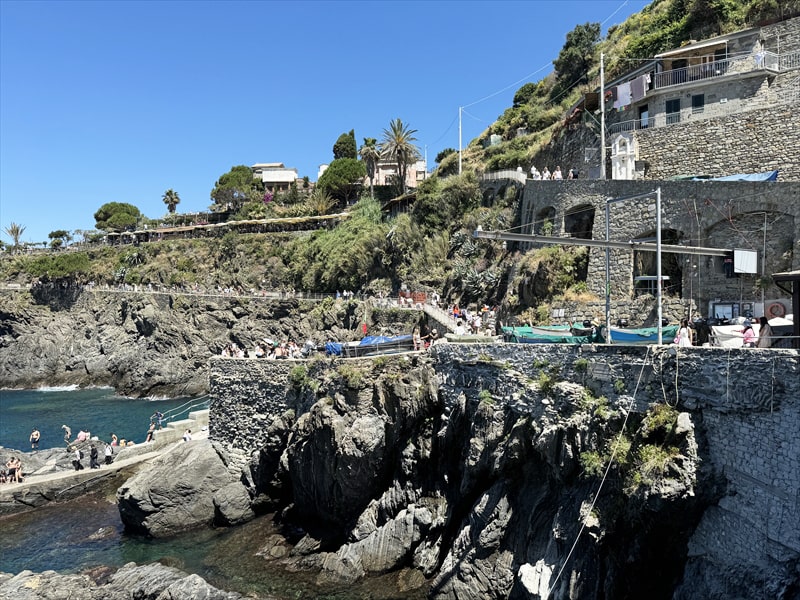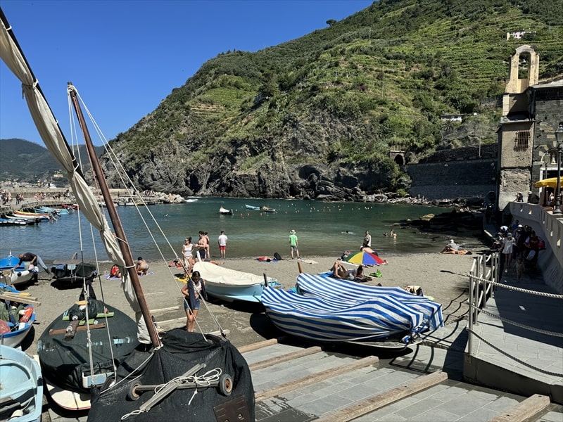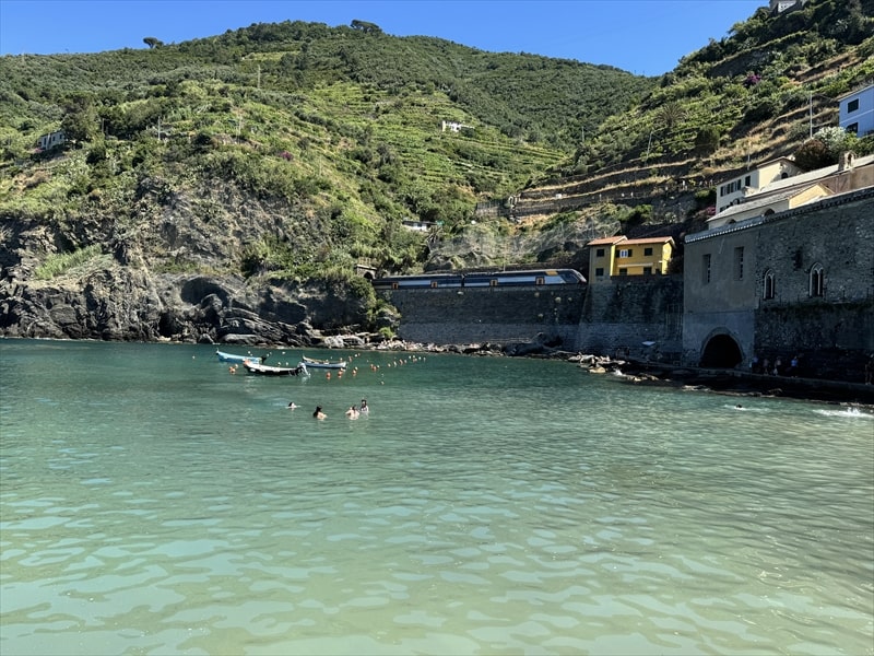 ヴェルナッツァは狭いビーチまでの駅からの通りの両脇の建物はカラフルでお土産店も多く賑わっているのですが、マナローナに比べて人が少ないのでゆっくりと滞在するには良い場所だと思いました。