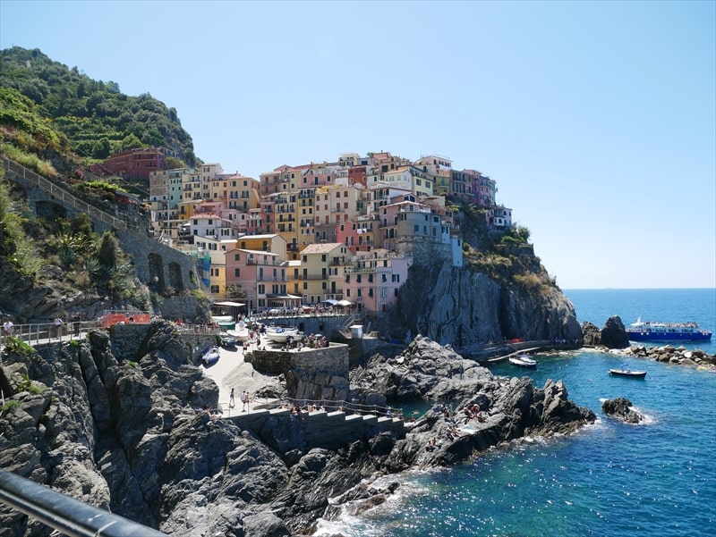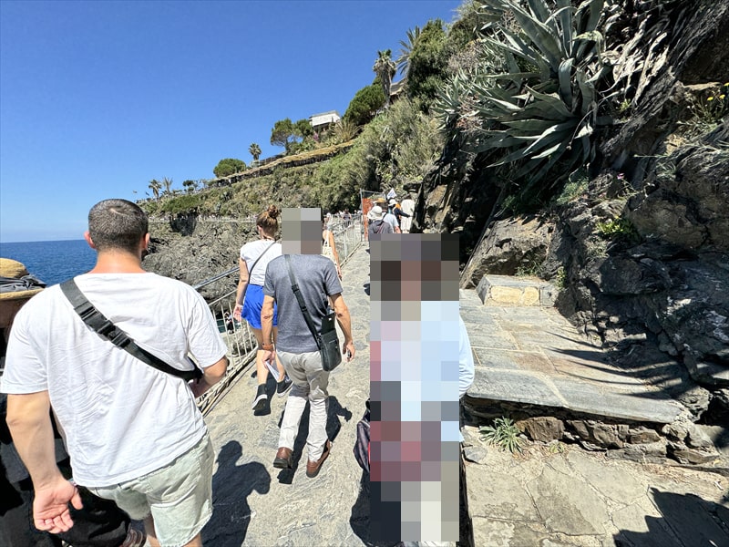 マナローラの街をビーチと共に眺めることができるフォトスポットがある崖沿いの道を歩きます。