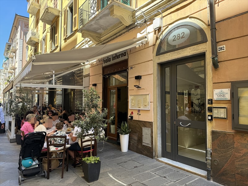 マナローナ駅からラ・スペッツア駅まで列車で帰ってきて、駅からあるいて10分ほどでランチのレストランのイルジャルディネットil giardinettoに到着です。