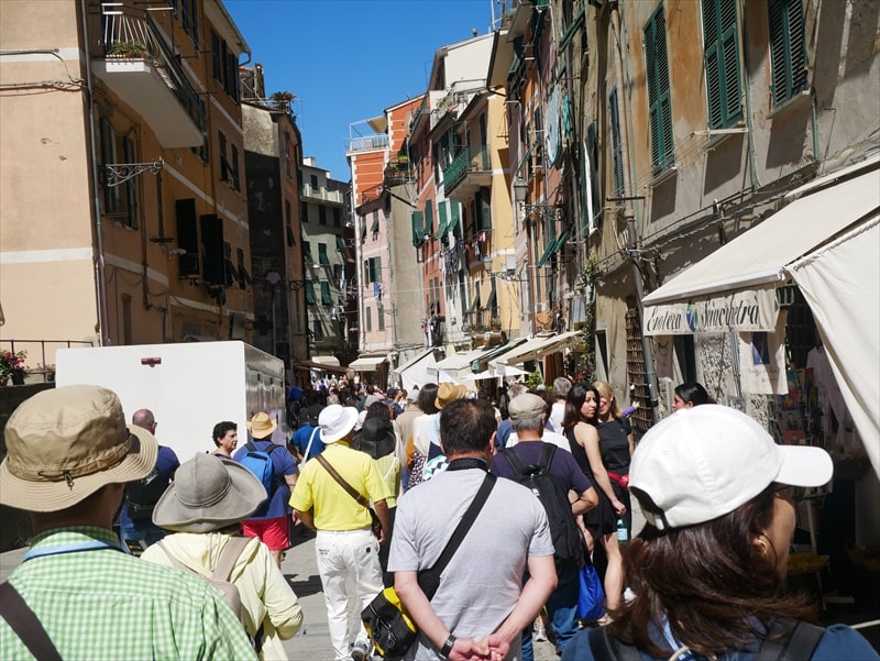 ヴェルナッツァ駅を降りますと通りには観光客があふれています。