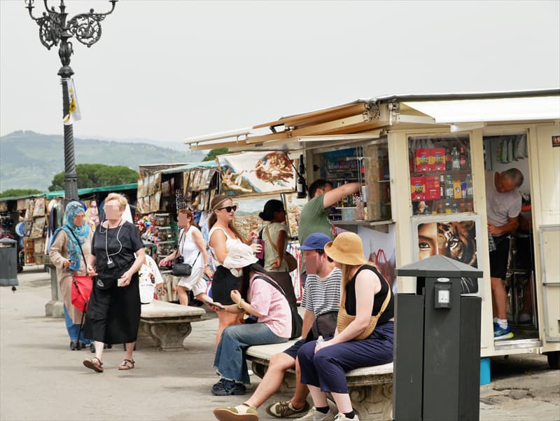 ヴェッキオ橋はお土産屋が並ぶ有名な橋で、ここで一度景色を楽しむのがおすすめ