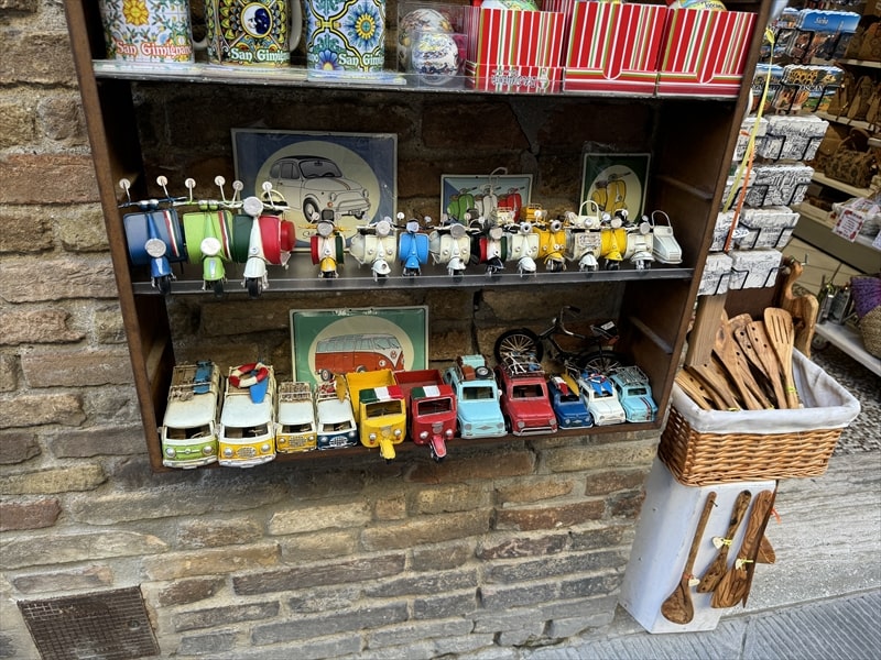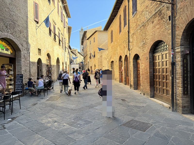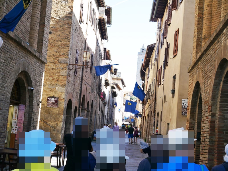 現地ガイドの方の話ではフィレンツェのホテルに宿泊したアメリカなどからの団体客の方はサン・ジミニャーノまで来るのに1時間以上かかるのでまだ街は静かなのですが、午前10時を過ぎると観光客が押し寄せてとても賑やかになるそうです。