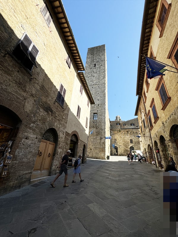 チステルナ広場から進みますとドゥオモ広場で、ドゥオモ広場では残された14ある塔のうち7つを見ることができます。