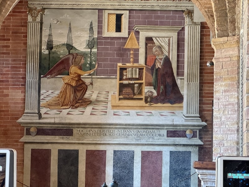 ドゥオモは1148年建造建物で、内部に入らなくても外からだけ見ても宗教画のフレスコ画が飾られているのを見ることができます。
