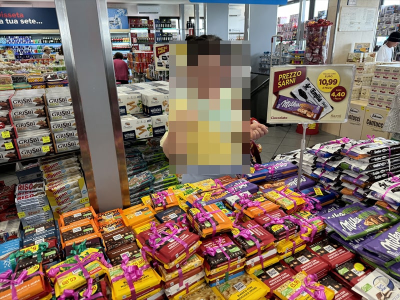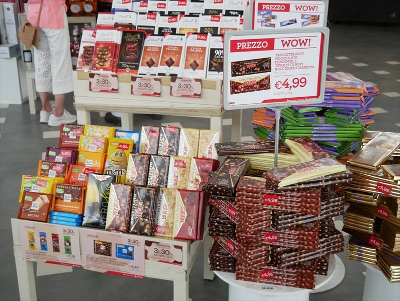 イタリアのサービスエリアにはお菓子がたくさん販売されているのですが、チョコレートも各種販売されています。