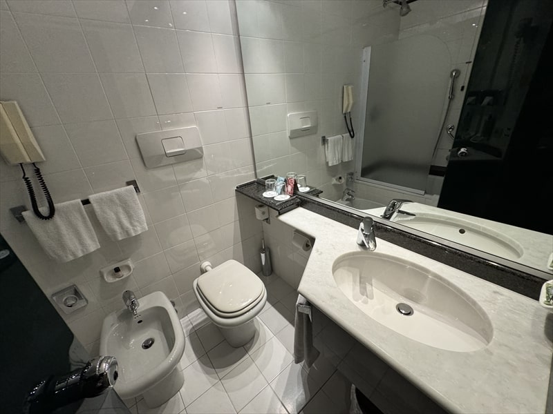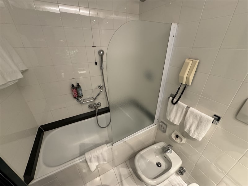 部屋の冷蔵庫には有料のドリンクが入っていて、ミネラルウォーター2.5ユーロ、ソフトドリンク5ユーロ、ビール6.5ユーロ、白ワイン6ユーロ、スパークリングワイン12ユーロ、スナック4ユーロとなっていました。