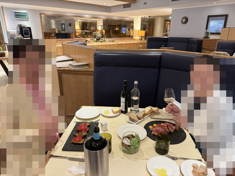 一泊目の夕食はツアーに付いていますのでホテル内のラ・コルテ(La Corte)というレストランで食べました。