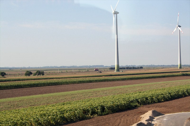 オーストリアは結構な規模の工業国なのかなと思っていますと、道の両側に風力発電の風車がたくさん見えてきます。