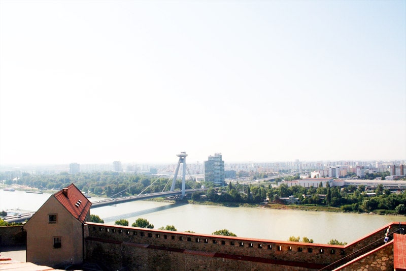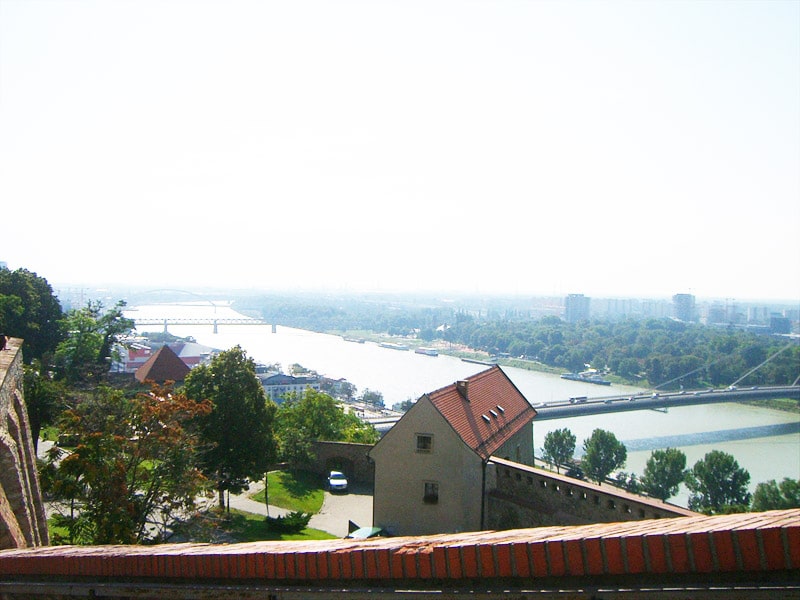 首都ブラスチラバに入りますとドナウ川の向こうの丘の上に将棋盤をひっくり返した様なブラスチラバ城が見えてきます。