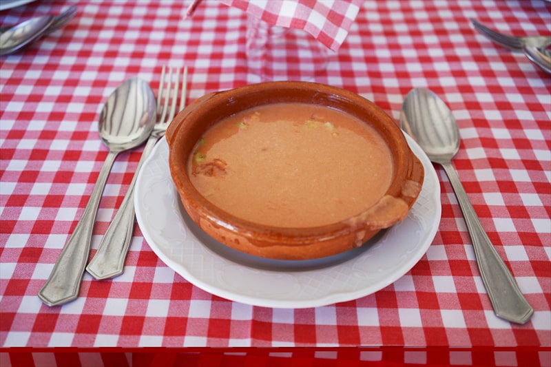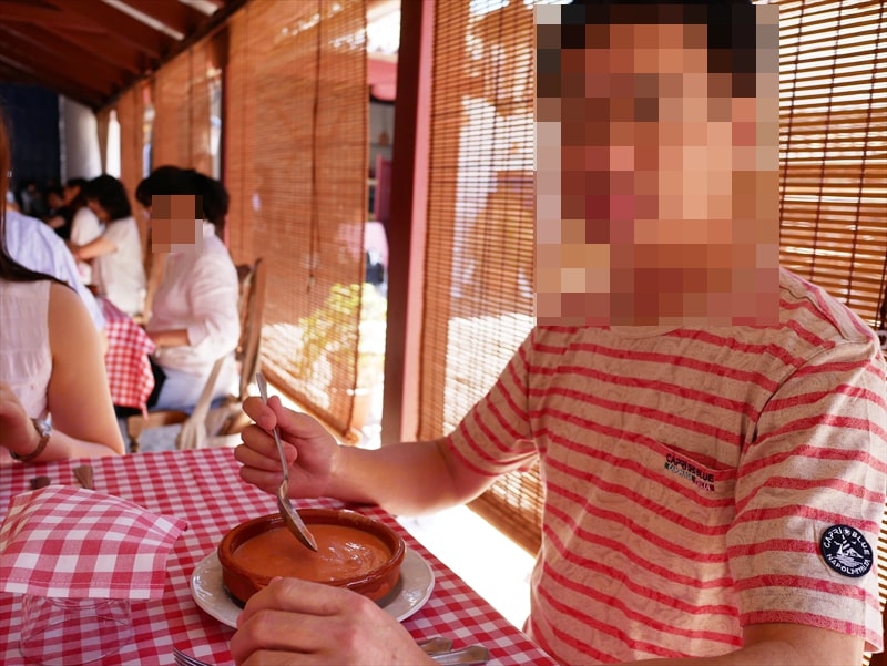 食事にはガスパチョと生ハムの盛り合わせが出されました。