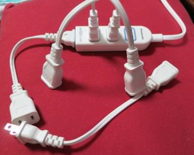 また充電器はコンセントに直接差すタイプが多いので、コンセントの口が多いものでも充電器が互いに干渉して何台も充電器が接続できないことがあるため、我が家では短い延長コードをも利用しました。