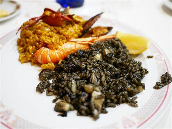 そしてメインのパエリアはシーフードパエリアとイカ墨のパエリアの両方を楽しむことができました。