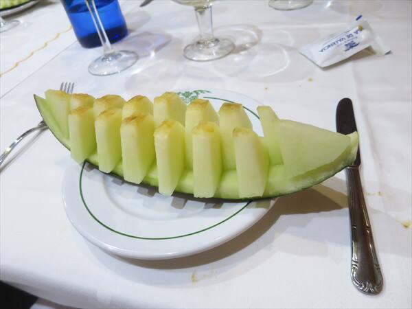 デザートにはメロンが出されたのですがとても大きいもので、お腹いっぱいの状態でしたからほとんど食べることが出来ませんでした。