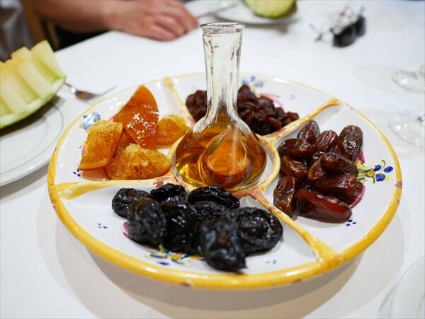 そしてテーブルにはバレンシア・カタルーニャ・アラゴン地方の名物のポロンとドライフルーツ(オレンジ・アンズ・レーズン・ナツメグ)が出されました。