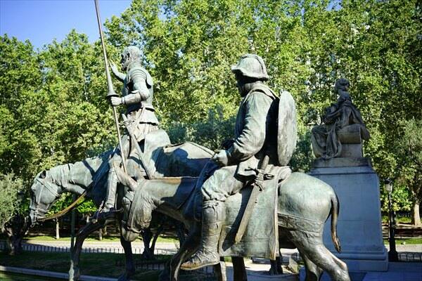 公園で現地ガイドの方の説明を聞き、ドンキホーテ像の前で写真を撮ります。