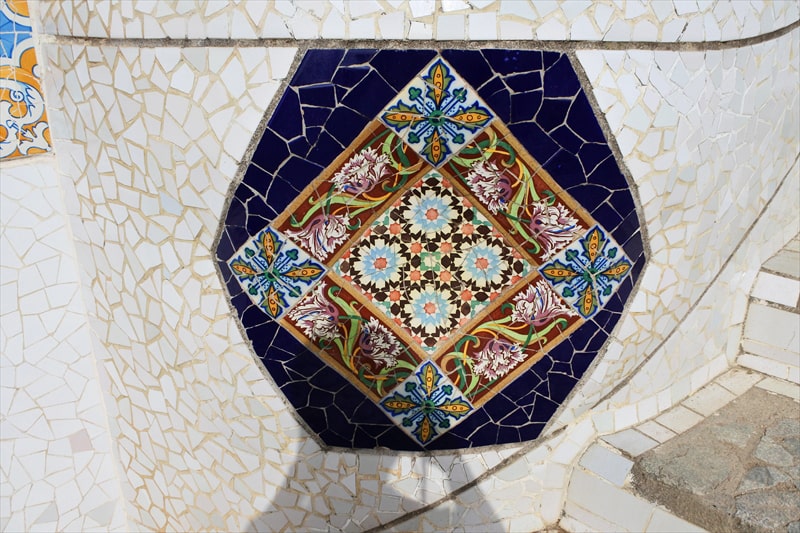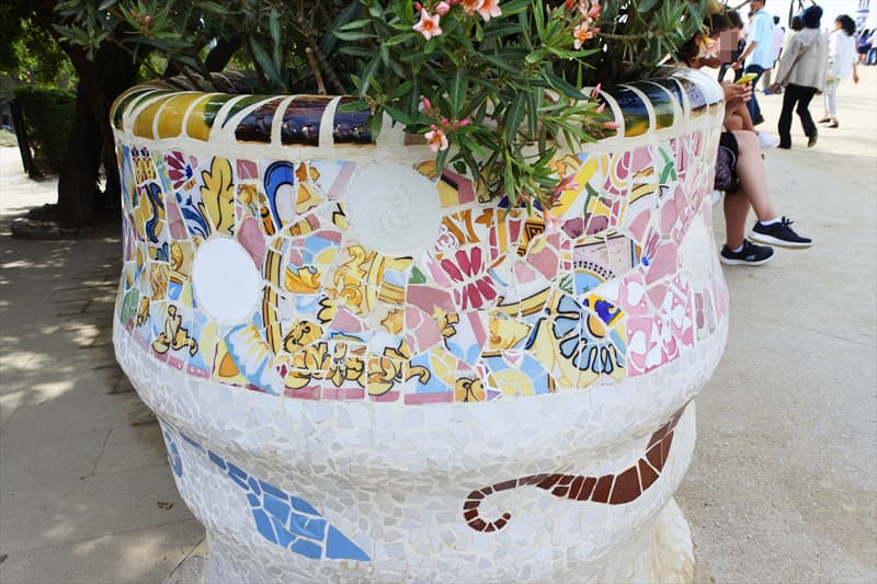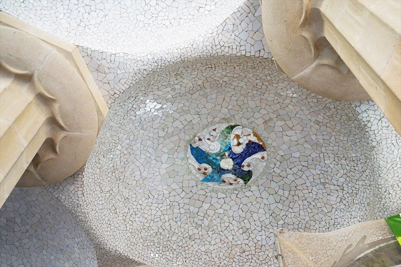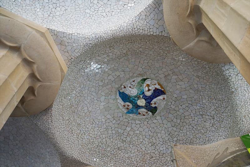 周囲を囲む波打つベンチはタイルの破片を用いたモザイクで覆われており、建築家ジョセップ・マリア・ジュジョルによって設計され、1909年から1914年の間に建設された