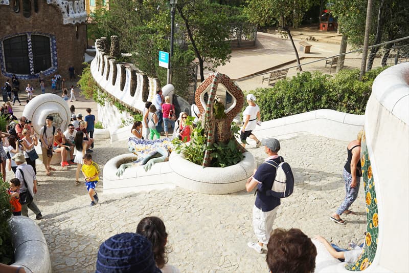 グエル公園で最も有名なシンボルで、バルセロナを代表する撮影スポットです。