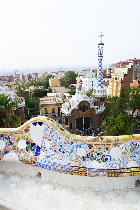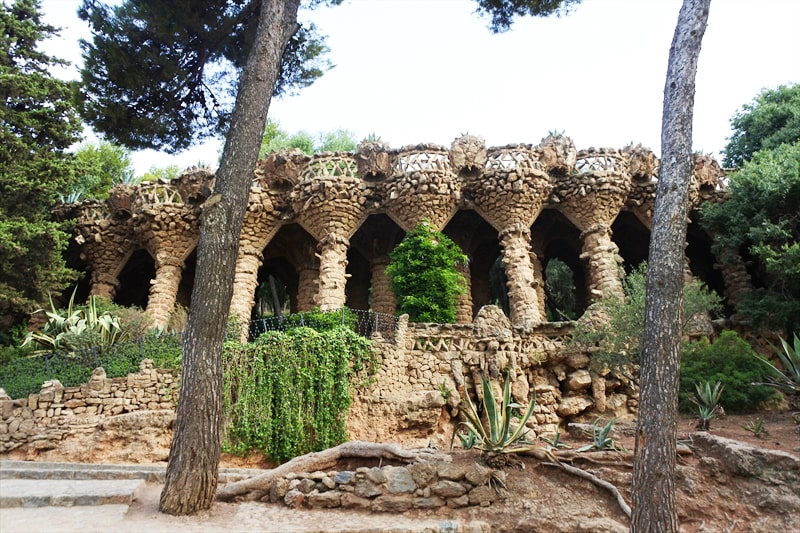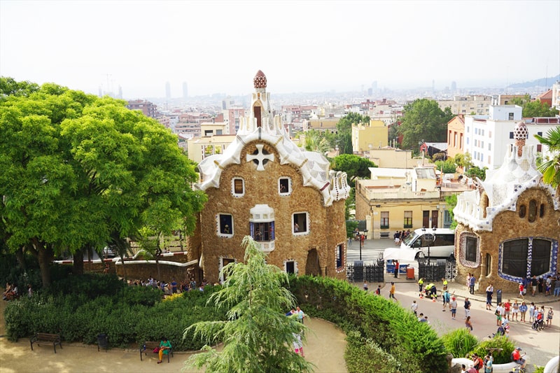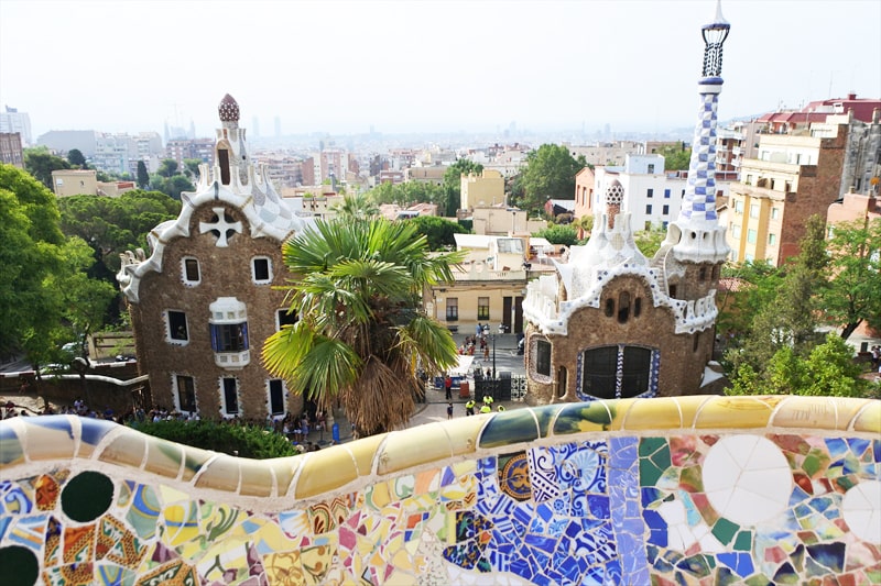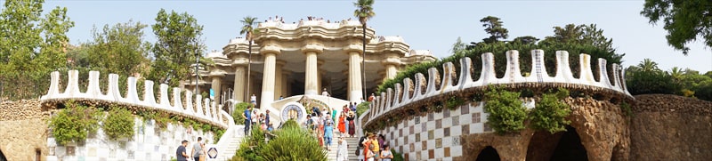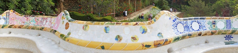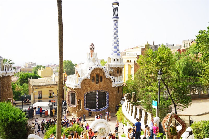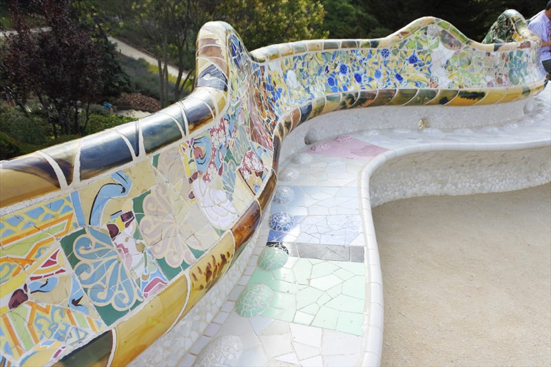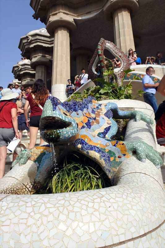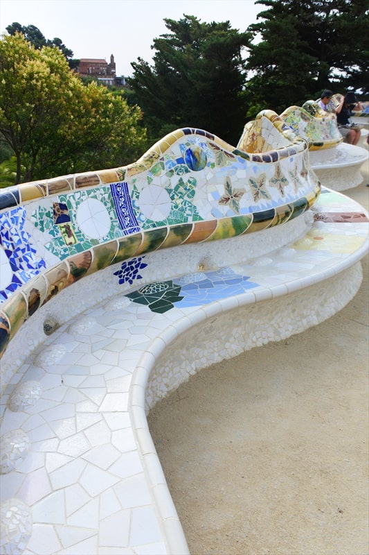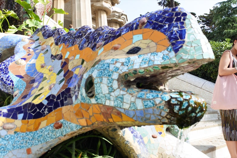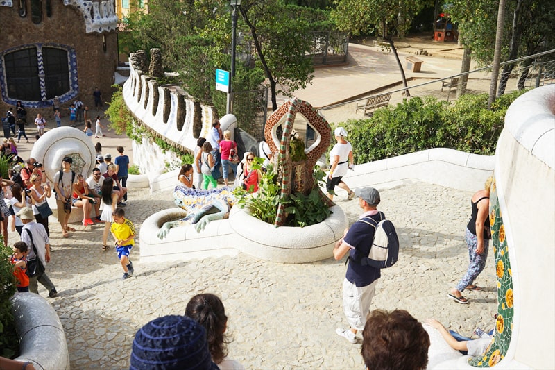 見どころは世界一長いベンチとして知られるヘビの様に波打つベンチ、トカゲの像、メイン広場を支えるギリシャ神殿風の建造物、広場からのバルセロナの街並み、グリム童話をモチーフにしたお菓子の家、洗濯女の回廊などです。