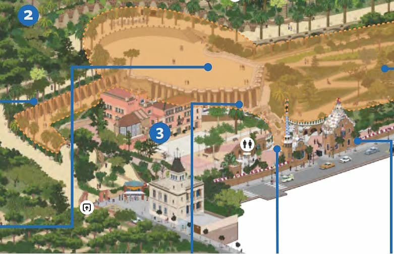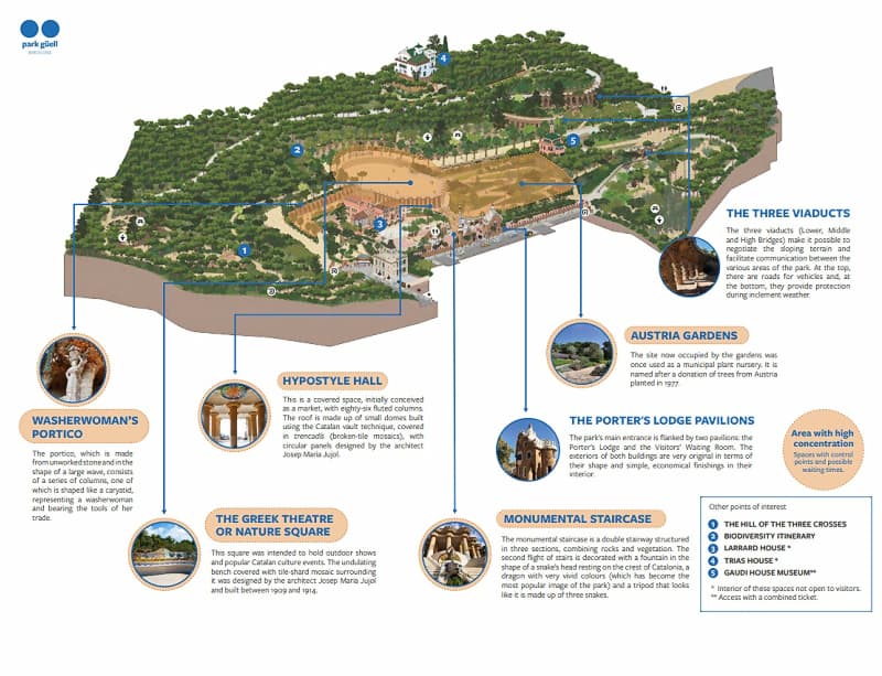 出展:https://parkguell.barcelona/sites/default/files/mapa/ParkGuell_Flyer_Imprescindibles_en_red_c.pdf