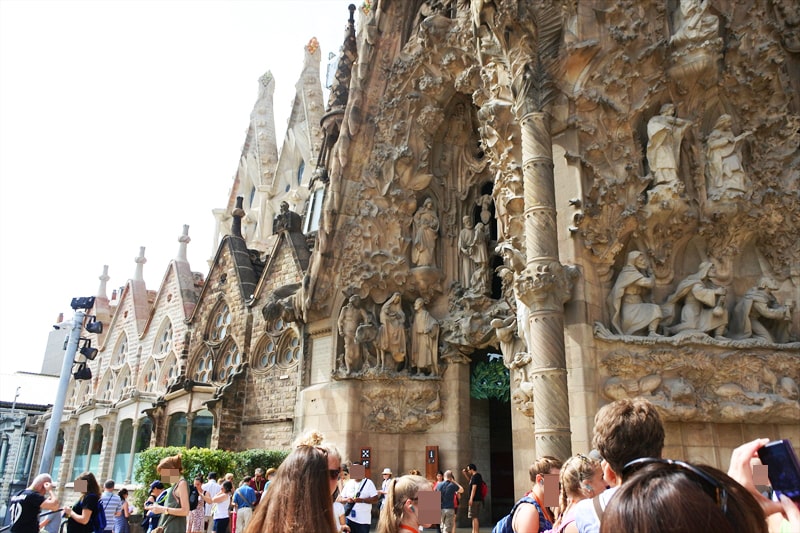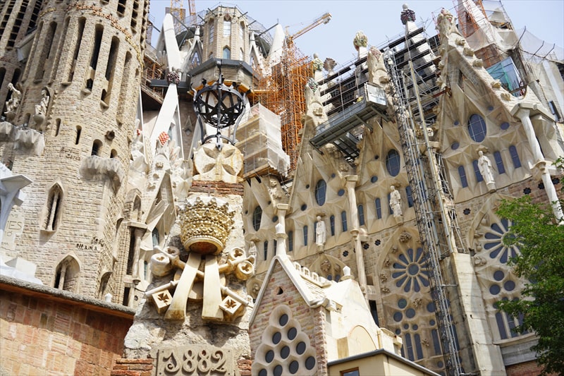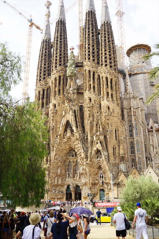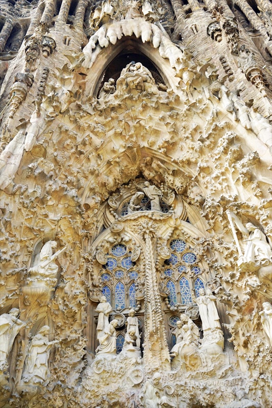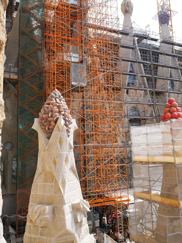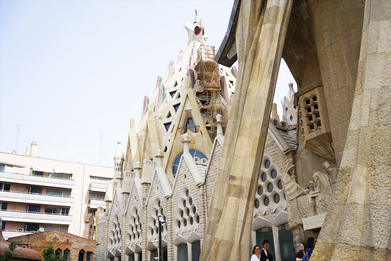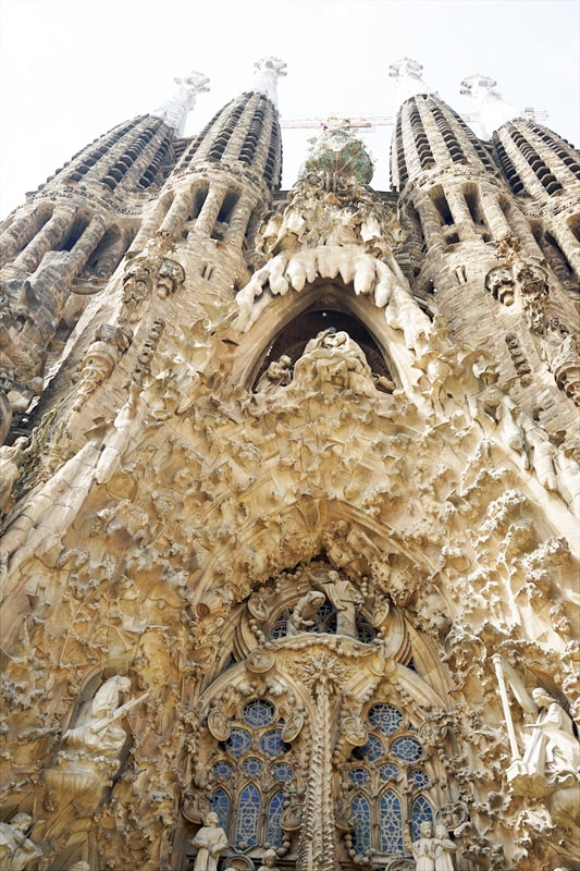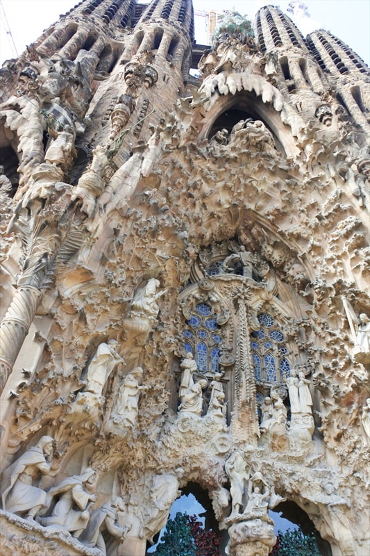 生誕のファサードはガウディが細部に至るまで設計していて、完成に近い状態まで見ていた場所です。