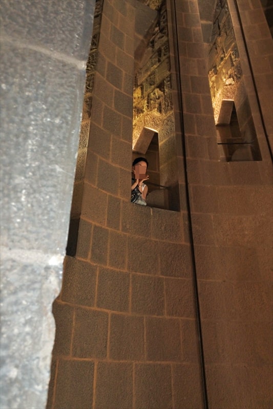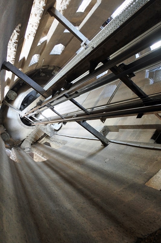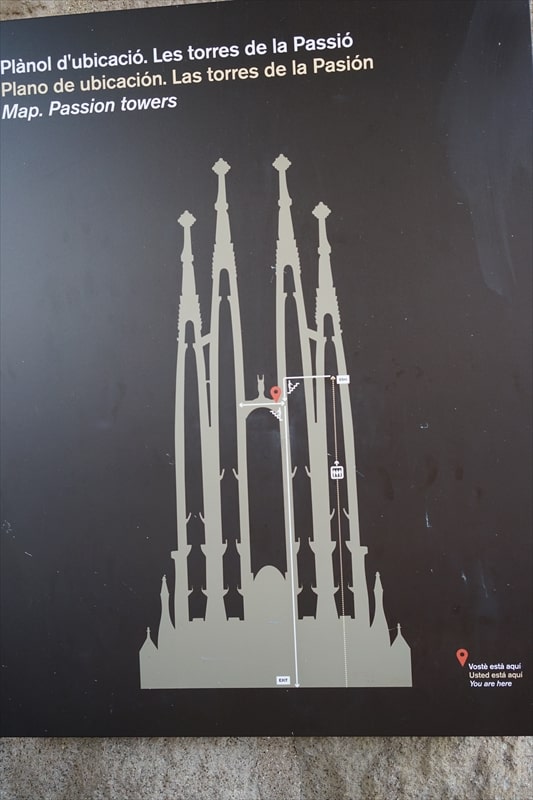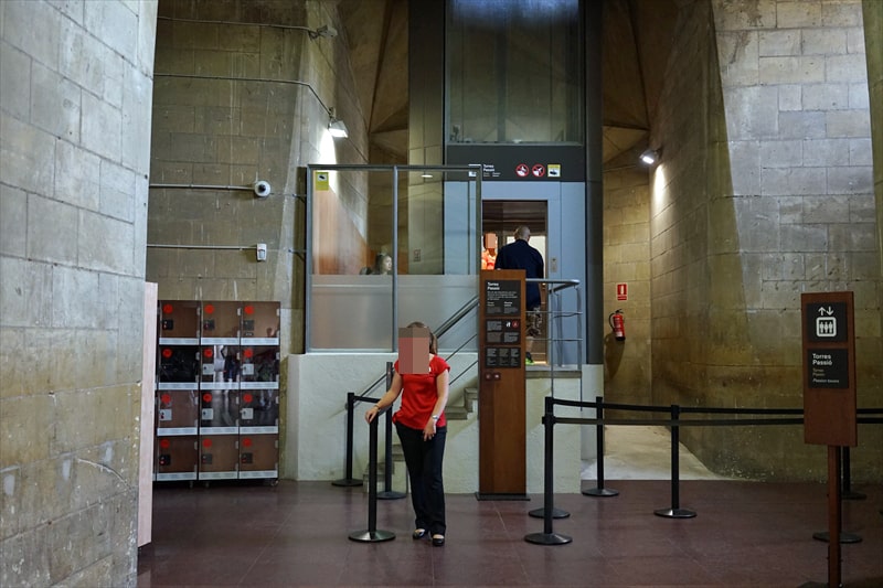 私たちは聖堂内部のフリータイム時間に受難のファサードのエレベーターに乗りました。