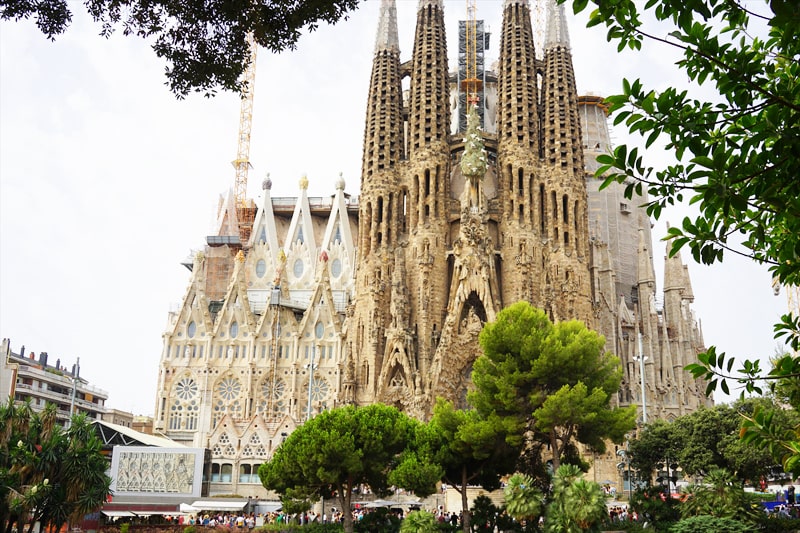 まずはサグラダファミリアの全景を見るためにガウディ広場に向かいこちらからの眺めを楽しみます。