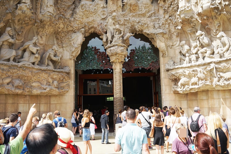 公園での撮影後に再び徒歩にてサクラダファミリアの入り口に向かい、中に入って観光となります。