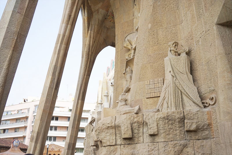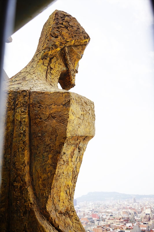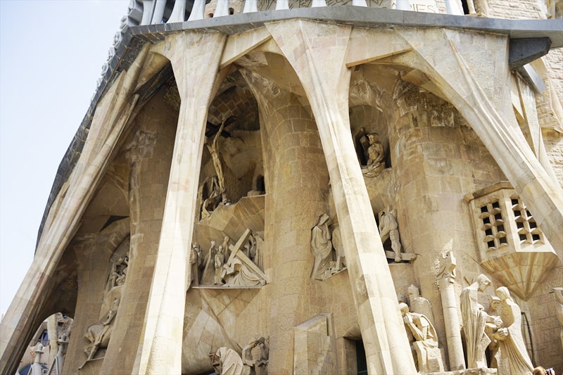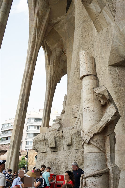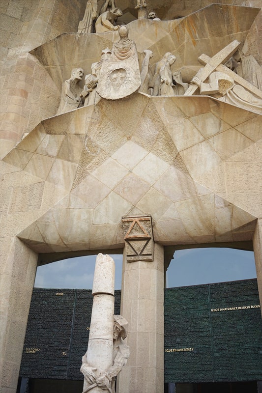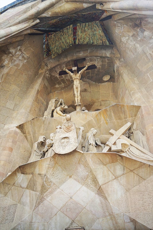 受難のファサードの彫刻は柔らかな感じの生誕のファザードとはまったく違う角ばった印象でしたが、これは彫刻家のジュゼップ・マリア・スビラックスが、ガウディのスケッチを元にして現代風にアレンジしたためだそうです。